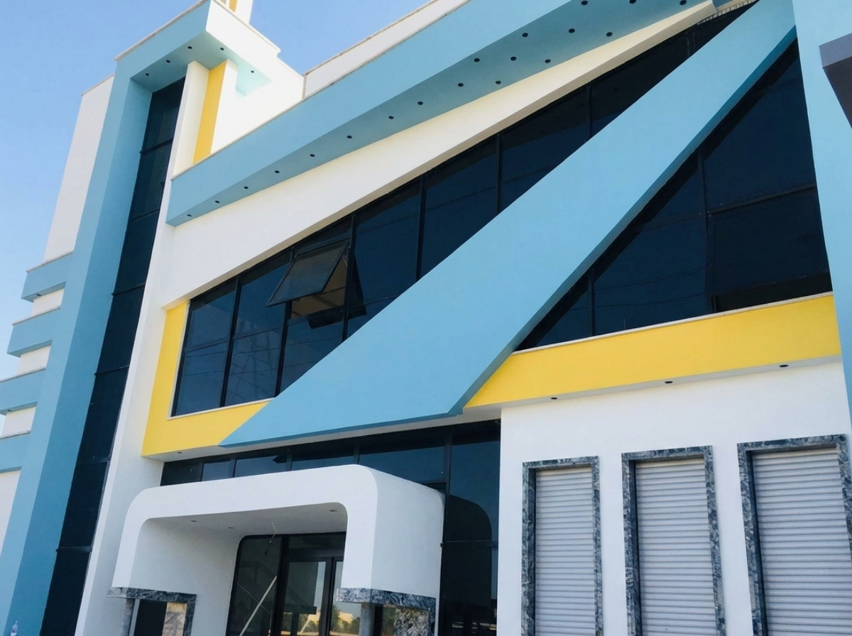 تنفيذ واجهات المباني التجارية والسكنية بأحدث أنظمة التثبيت والزجاج العاكس للحرارة.